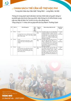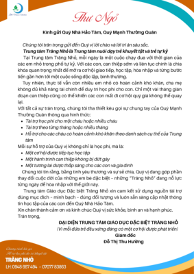 Dưới đây là một số thông tin của Trung Tâm giáo dục đặc biệt “Trăng Nhỏ”