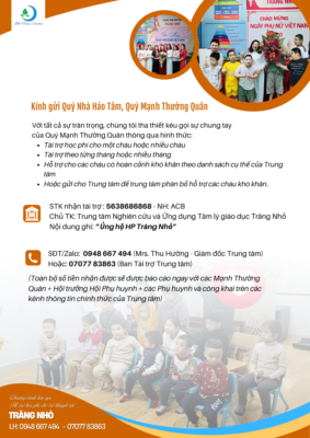 Quý Nhà Hảo tâm cũng có thể ủng hộ trực tiếp các con thông qua Trung tâm đang nuôi dạy các con theo thông tin sau đây: